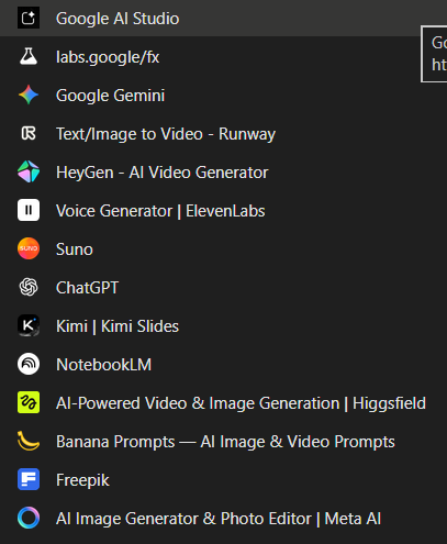 Usei agentes de aprimoramento de prompt criados por mim — três no total — desenvolvidos especificamente para aplicações em Sora 2 e Veo 3. As plataformas utilizadas foram: Google AI Studio, Gemini, Runway, HeyGen, ElevenLabs, Suno, ChatGPT, Kimi Slides, NotebookLM, Higgsfield, Banana Prompts, Freepik e Meta AI.