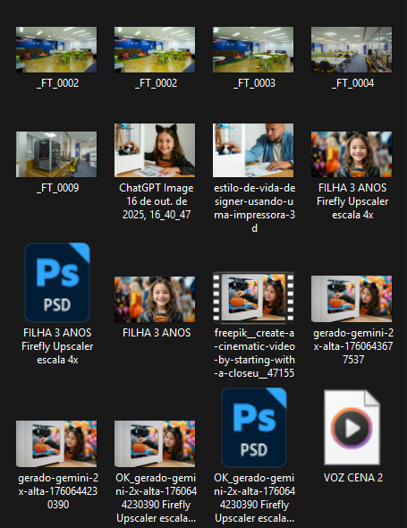 Após o vídeo principal, produzi também três vídeos segmentados de 30 segundos cada, voltados aos públicos jovem, família e profissional. Nesses vídeos, além da criação visual, também criei as vozes dos personagens, aplicando técnicas de IA para síntese vocal.